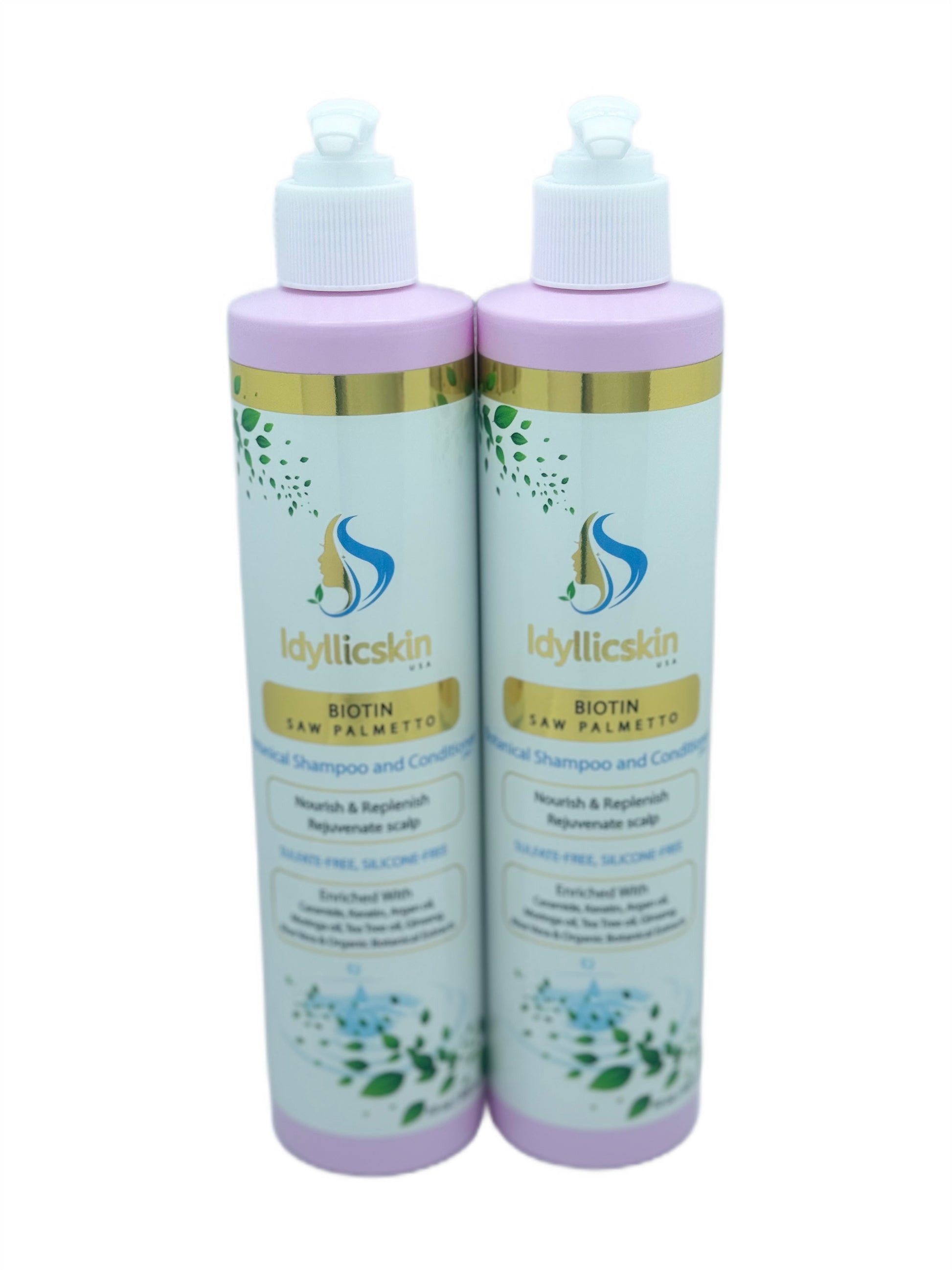 Biotin Saw-Palmetto Botanical Shampoo and Conditioner with Tea Tree oil, Argan oil, Moringa oil, Rosemary, Ginseng, Ceramide and Keratin